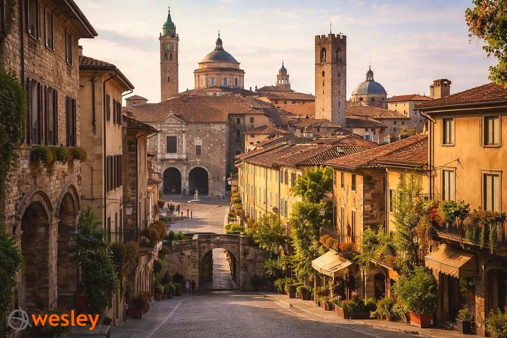- Bergamo – malownicze miasteczko położone u stóp Alp i przepięknych włoskich jezior Jezioro Como i Garda jest niekwestionowaną perłą regionu Lombardia. Stare Miasto zaprasza nas na wycieczkę po średniowiecznych ulicach, pokazuje cuda architektury sakralnej oraz zamki wpisane na Listę Światowego Dziedzictwa UNESCO. Zwiedzanie Bergamo z przewodnikiem lokalnym w formie spaceru do Katedry św. Aleksandra oraz Bazyliki Matki Bożej Większej i Starego Placu, Città Alta, brama Porta San Giacomo. Wieża Miejska Cappella Colleoni;