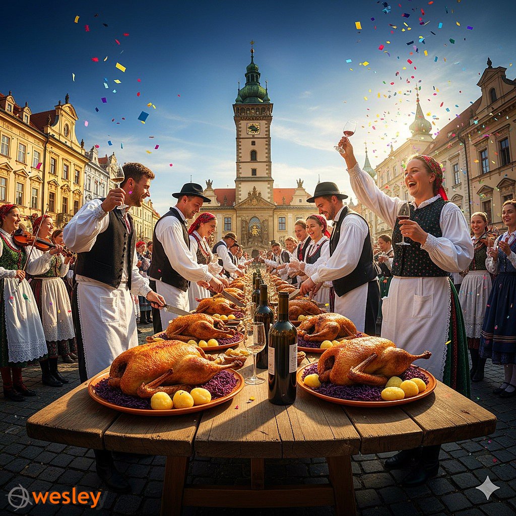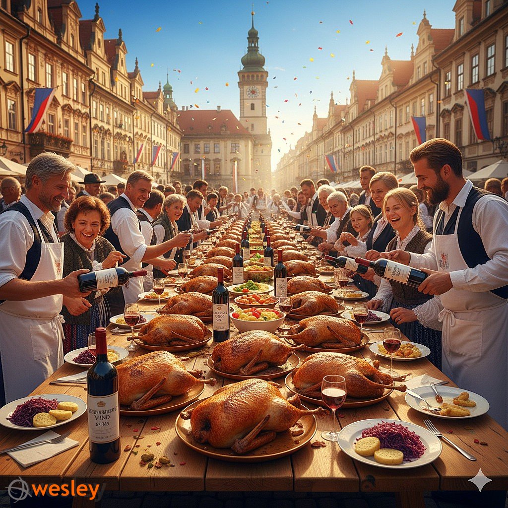 - Święto Gęsiny i obchody św. Marcina – raz w roku Brno zamienia się w stolicę smaków i radości – to właśnie tu, 11 listopada, odbywa się wyjątkowe Święto Świętego Marcina, pełne wina, gęsiny i lokalnych tradycji. O godzinie 11:00 na Placu Wolności następuje uroczyste otwarcie pierwszej butelki młodego wina – lekkiego, owocowego trunku z najnowszego rocznika. Od tego momentu całe miasto celebruje – wypełniają je stoiska z regionalnymi przysmakami, aromaty pieczonej gęsi i dźwięki muzyki na żywo. To niepowtarzalna okazja, by poczuć klimat czeskiego świętowania w sercu urokliwych Moraw!