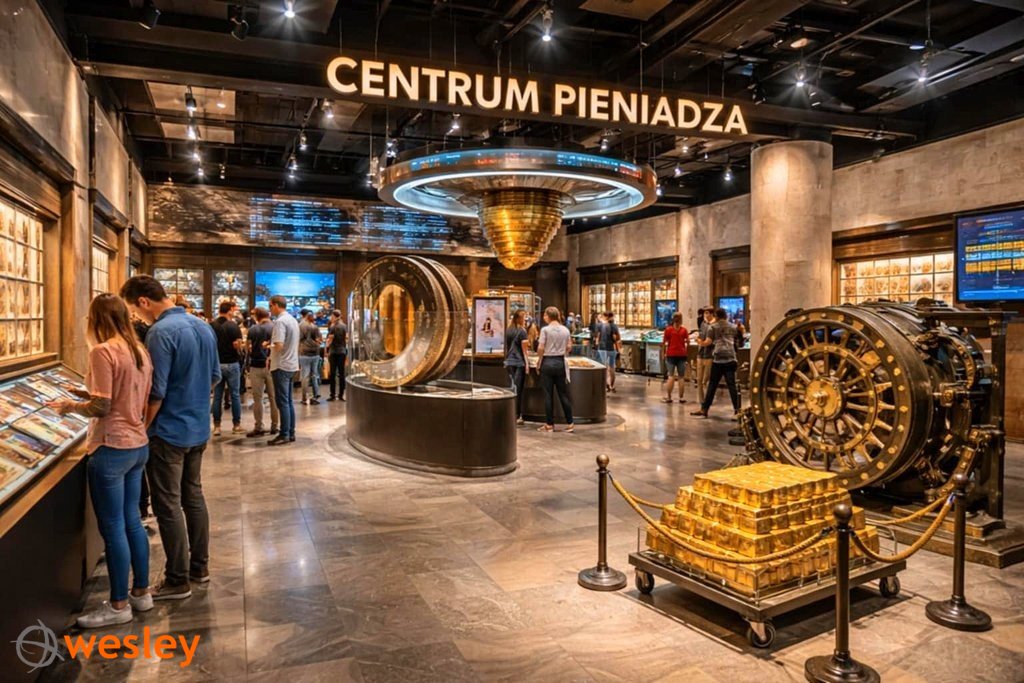 - Centrum Pieniądza NBP – miejsce, które zaskakuje, inspiruje i wciąga bez reszty, nowoczesne, interaktywne muzeum, w którym historia spotyka się z technologią, a ekonomia staje się przygodą. Zobaczymy: Prawdziwą sztabę złota, miliony w banknotach, poznamy historię pieniądza – od starożytnych monet po nowoczesne płatności bezgotówkowe, unikatowe kolekcje monet i banknotów z całego świata;