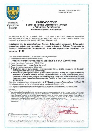 Wpis do rejestru organizatorów, zezwolenia, licencje...