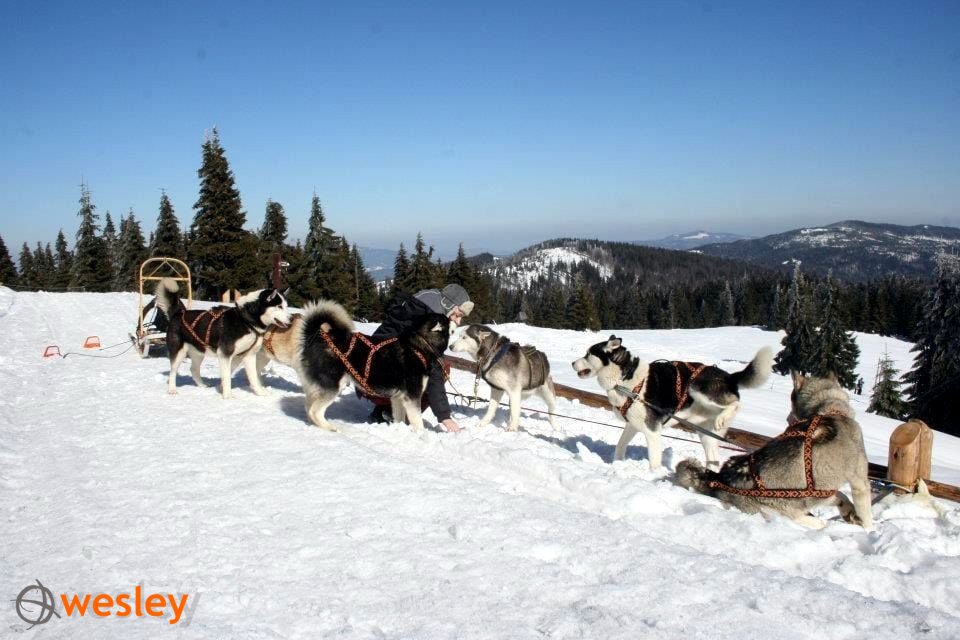 - psie zaprzęgi – przygoda z powożeniem psim zaprzęgiem – poczuj wiatr na twarzy i adrenalinę, gdy Twój zaprzęg rusza przez śnieżną trasę! Pod okiem doświadczonych „maszerów” poznasz bliżej psy zaprzęgowe i ich zwyczaje (opowieść o rasach psów zaprzęgowych – ok. 15–20 minut), a następnie samodzielnie odbędziesz przejazd zaprzęgiem ciągniętym przez 2–4 wspaniale wyszkolone psy (ok. 100 m);