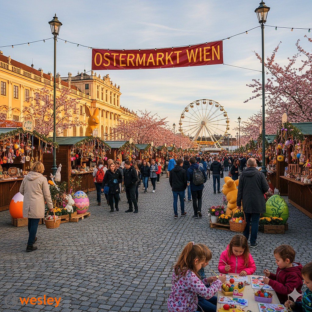 - Jarmark Wielkanocny – w tym wyjątkowym wiosennym czasie wiedeńskie place zamieniają się w barwne jarmarki wielkanocne… W powietrzu unosi się zapach świeżych kwiatów, domowych wypieków i aromatycznej kawy. Stare miasto zdobią kolorowe pisanki, palmy i wesołe zajączki, które wprowadzają radosny nastrój. Nieopodal głównego wiedeńskiego Jrmarku Wielkanocnego przy Pałacu Schönbrunn znajduje się wioska wielkanocna – na placu Freyung. Tu w czasie Świąt Wielkanocnych stoiska oferują tradycyjne rękodzieło, malowane jajka, koszyczki i regionalne specjały. Nie brakuje też atrakcji dla najmłodszych – wspólnego malowania pisanek i poszukiwania zajączka wielkanocnego.