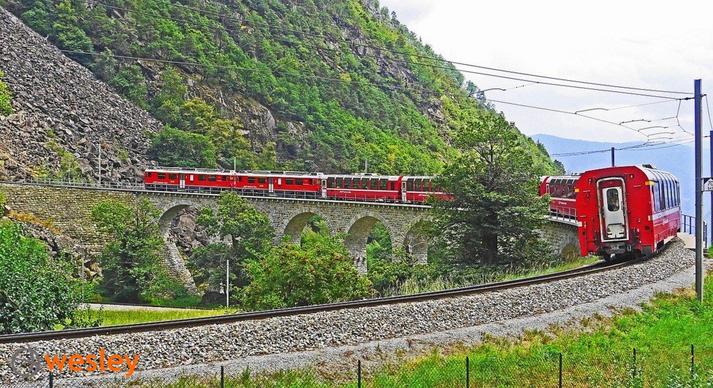 Bernina Express – kultowy, panoramiczny pociąg Kolei Retyckich, który łączy północ Europy z jej południem – przejeżdżając przez tereny wpisane na Listę UNESCO, w pobliżu lodowców, po drodze pokonuje m.in. 55 tuneli i 196 mostów.... PEŁNA TRASA z CHUR do TIRANO (przez St. Moritz) to aż 4 godziny nieziemskich widoków… Podczas całej podróży czeka na nas mnóstwo niezapomnianych atrakcji i niesamowitych krajobrazów! To TRZEBA zobaczyć!