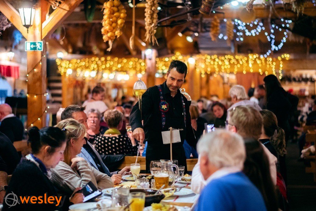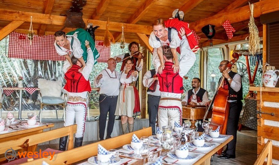 - wieczorem CZESKA BIESIADA PIWNA (piwo, wino i napoje soft bez ograniczeń) – obiadokolacja przy piwie i muzyce na żywo. Na powitanie Medovina – tradycyjny Morawski miód pitny. Kolacja ma formę bogatego rautu z 4-daniową obiadokolacją. W trakcie biesiady pokaz tancerzy i muzyków w tradycyjnych strojach Czech i Moraw. Nauczymy się tradycyjnych biesiadnych czeskich przyśpiewek, tańców i gier. Dla osób które akurat obchodzą urodziny – specjalny prezent. Czeska biesiada jest programem otwartym – sala przeznaczona również dla turystów indywidualnych lub innych grup, co dodaje kolorytu międzynarodowym integracjom. Biesiada odbywa się w innym miejscu niż nocleg. Całość trwa 2,5 godziny;
