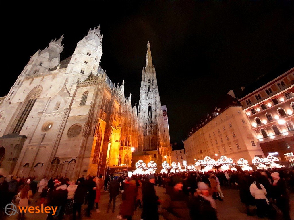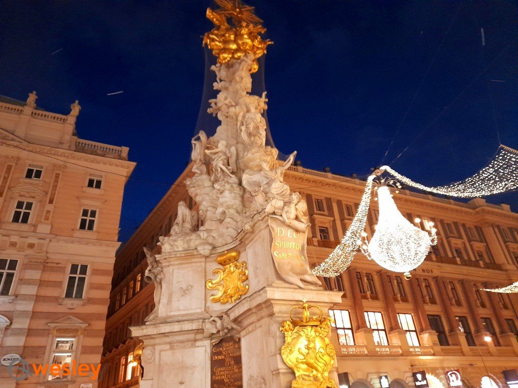 - spacer z przewodnikiem po Starówce: Gotycka katedra św. Szczepana, (zwiedzanie wnętrza bez przewodnika, bezpłatne), ulica Graben, przy której znajdują się najbardziej eleganckie i najdroższe sklepy Wiednia oraz słynna Kolumna Świętej Trójcy (Morowa), upamiętniająca ofiary epidemii dżumy z 1679 r.